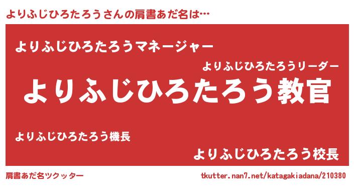 | ヘコむあだ名 | 『よりふじひろたろう(笑)』『よりを』 |
