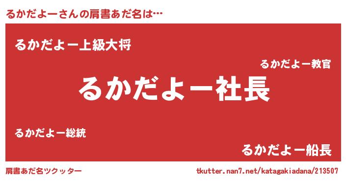 | ヘコむあだ名 | 『るかにー』『るかだよー(遠い目)』 |