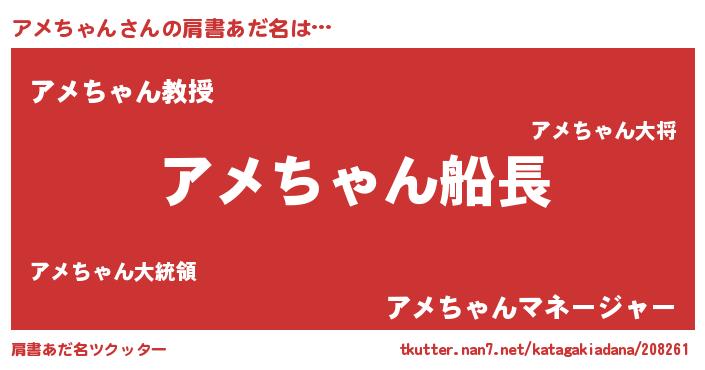 | ヘコむあだ名 | 『豆乳』『アメっ子』『アメにー』 |