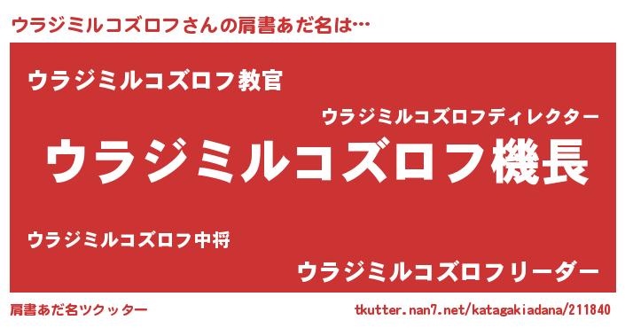 | 男性向けラノベタイトル風あだ名 | 『冴えないウラジミルコズロフの育てかた』 |