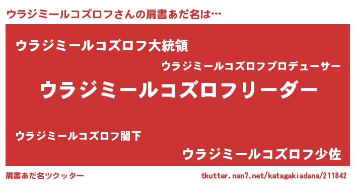 | 意味不明あだ名 | 『とにかく怪しいウラジミールコズロフ』 |
