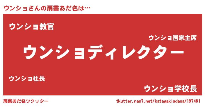 | 男性向けラノベタイトル風あだ名 | 『ウンショに滅ぼされるだけの簡単なお仕事です』 |