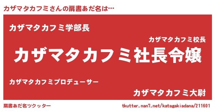| 胡散臭い通販商品みたいなあだ名 | 『億万長者になれる霊験あらたかなお札…その名も「カザマタカフミ」』 |