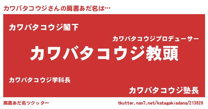 | ヘコむあだ名 | 『カワバタコウジ(笑)』『カワお』 |