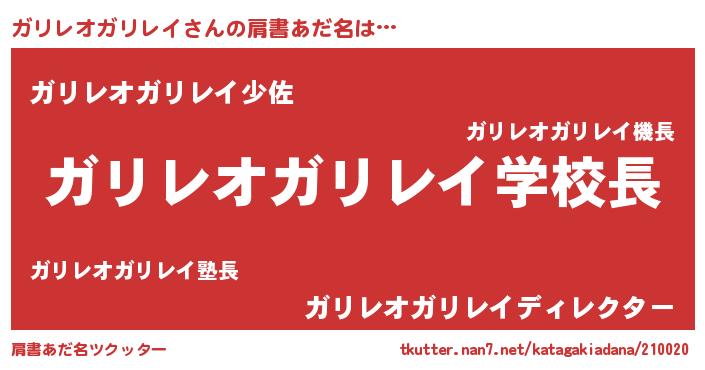 | ヒーロー風カッコイイあだ名 | 『友情の使者ガリレオガリレイ』 |