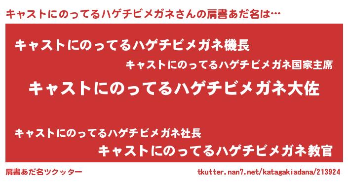 | 意味不明あだ名 | 『なめこ科キャストにのってるハゲチビメガネ属』 |