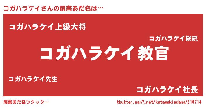 | 男性向けラノベタイトル風あだ名 | 『この素晴らしい世界にコガハラケイを!』 |