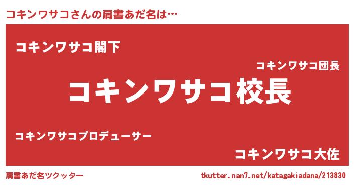 | ヘコむあだ名 | 『コキンワサコ(笑)』『コキ太郎』 |