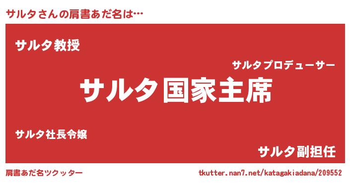 | 意味不明あだ名 | 『サルタフォーエバー』『永久保存サルタ』 |