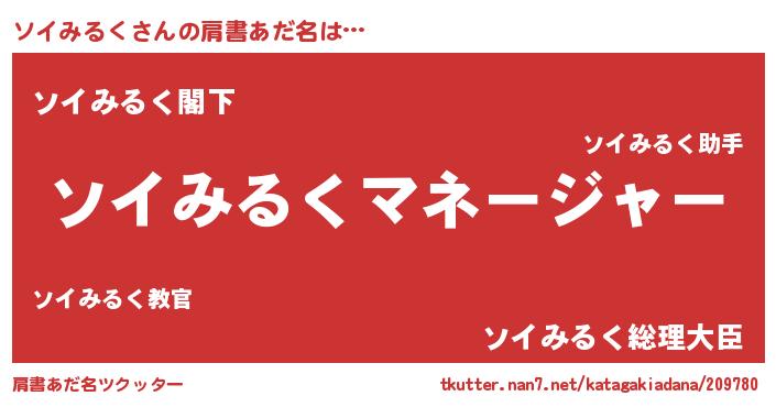 | 意味不明あだ名 | 『自称ソイみるく』『永久保存ソイみるく』 |