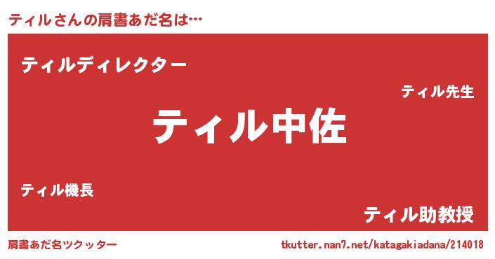 | ヘコむあだ名 | 『ティル(小並感)』『ティもー』 |