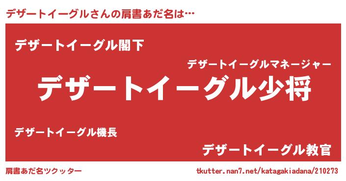 | 男性向けラノベタイトル風あだ名 | 『転生したらデザートイーグルだった件』 |
