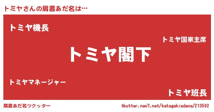 | 意味不明あだ名 | 『自称トミヤ』『とにかく怪しいトミヤ』 |