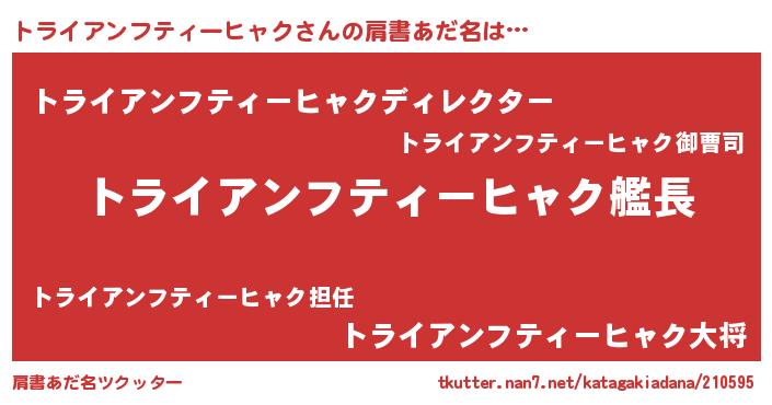 | ヒーロー風カッコイイあだ名 | 『スーパートライアンフティーヒャク』 |