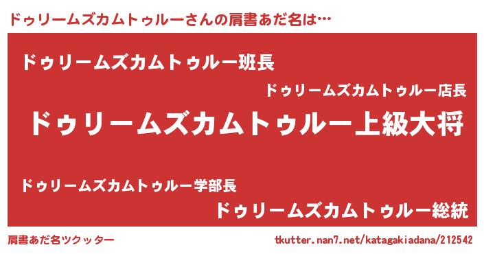 | 男性向けラノベタイトル風あだ名 | 『ドゥリームズカムトゥルースレイヤー』 |