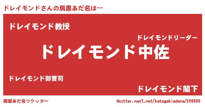| 男性向けラノベタイトル風あだ名 | 『転生したらドレイモンドだった件』 |