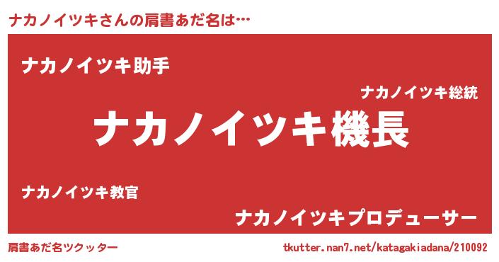 | 男性向けラノベタイトル風あだ名 | 『うちのナカノイツキが世界を掌握している!』 |