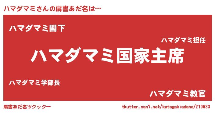 | 欧米人風あだ名 | 『ハマダマミクリステル』 |