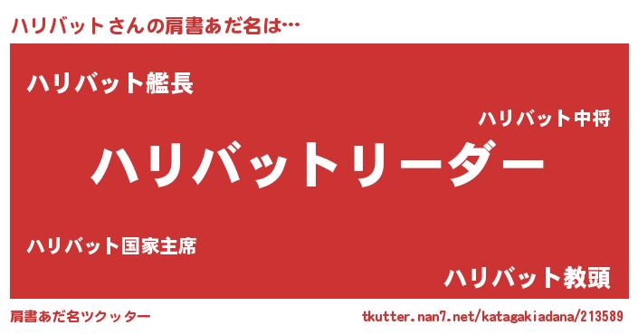| 男性向けラノベタイトル風あだ名 | 『ハリバットの嫁は女の子じゃないと思った?』 |