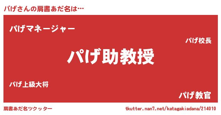 | ヒーロー風カッコイイあだ名 | 『天空の使者パげ』『仮面パゲダー』 |