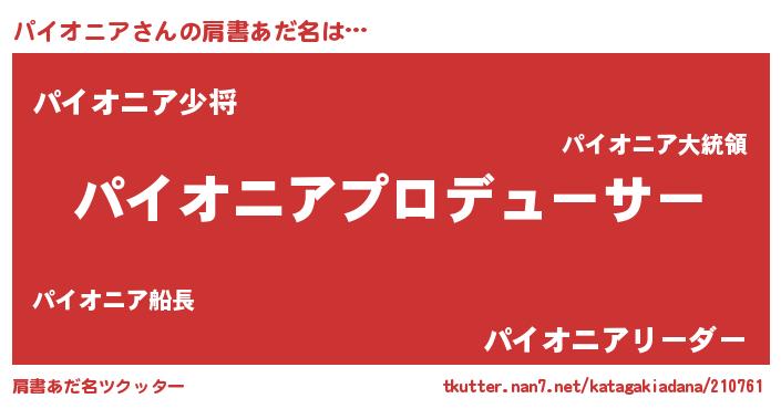 | 男性向けラノベタイトル風あだ名 | 『パイオニアに滅ぼされるだけの簡単なお仕事です』 |