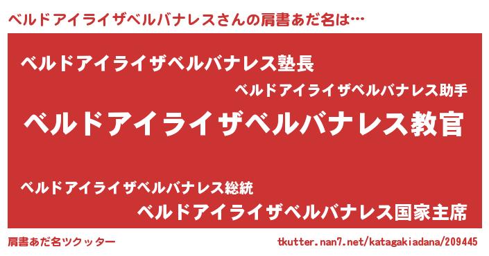 | 伝説のあだ名 | 『覚醒した僧侶ベルドアイライザベルバナレス』 |