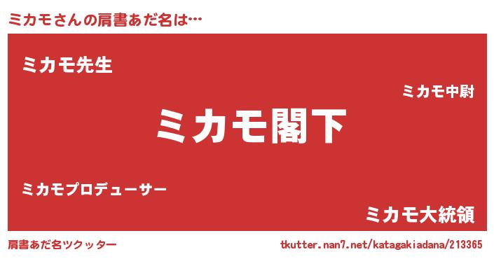 | 意味不明あだ名 | 『自称ミカモ』『永久保存ミカモ』 |