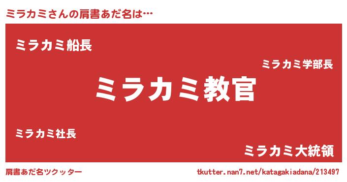| 意味不明あだ名 | 『住所不定無職ミラカミ(91歳)』 |