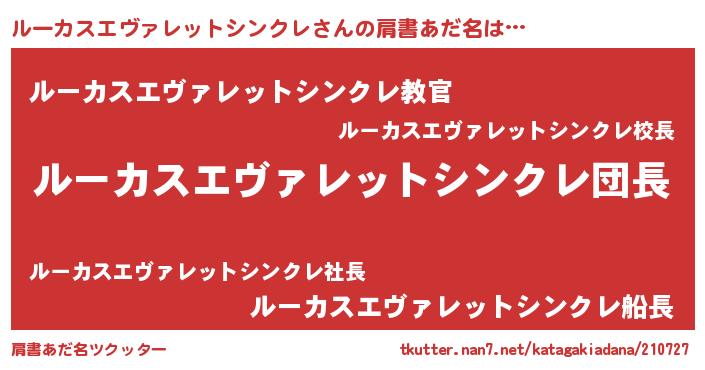 | 男性向けラノベタイトル風あだ名 | 『ルーカスエヴァレットシンクレの嫁は女の子じゃないと思った?』 |