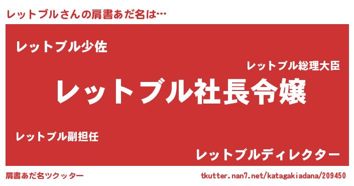 | 女子向けラノベタイトル風あだ名 | 『(仮)レットブルのやんごとなき事情』 |