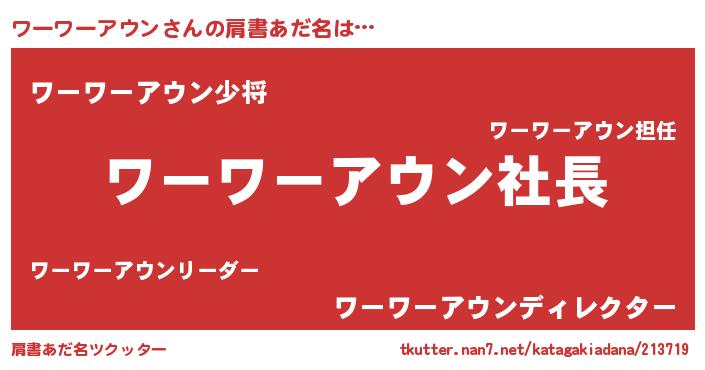 | 男性向けラノベタイトル風あだ名 | 『ワーワーアウンの憂鬱』 |
