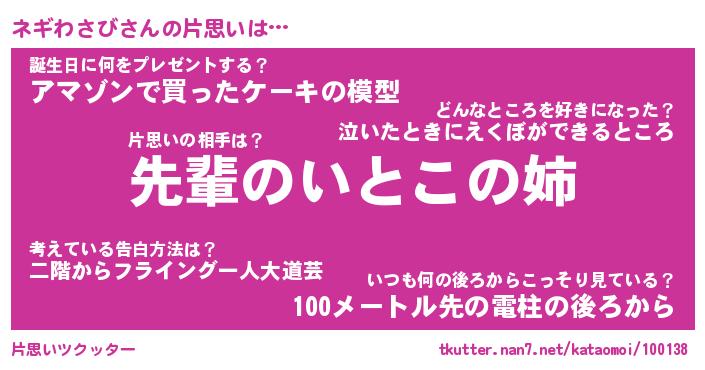 | ヘコむあだ名 | 『ネギにゅー』『なまこ酢』『ネギお』 |