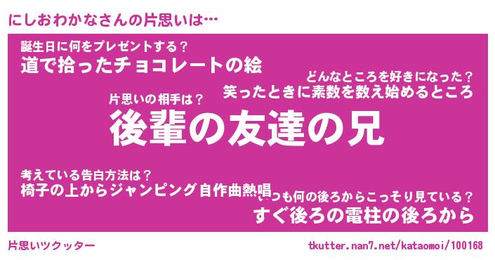 | 胡散臭い通販商品みたいなあだ名 | 『モテモテ間違いなし霊験あらたかなお札…その名も「にしおわかな」』 |