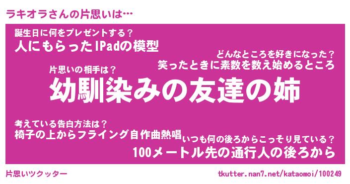 | ポケモン風あだ名 | 『ラキチュウ』『ラキオダネ』 |
