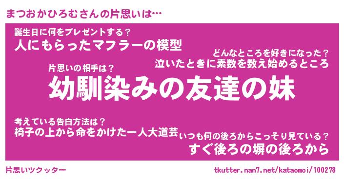 | 男性向けラノベタイトル風あだ名 | 『まつおかひろむの憂鬱』 |
