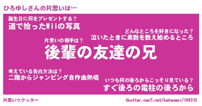 | ポケモン風あだ名 | 『ヒロチュウ』『ヒロユダネ』 |