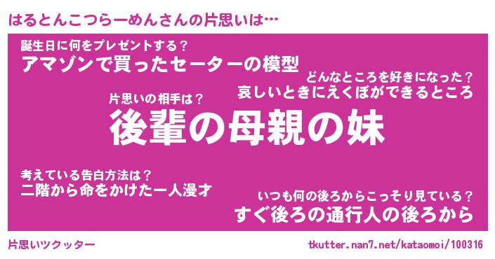 | 意味不明あだ名 | 『ペロリンはるとんこつらーめん』 |