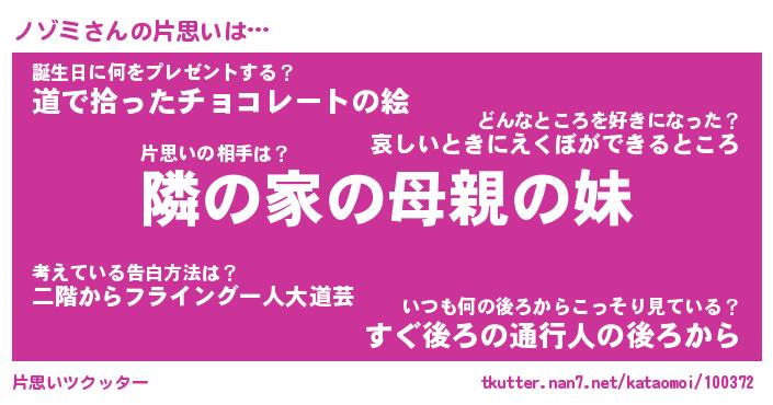 | 胡散臭い通販商品みたいなあだ名 | 『必ず成功するブレスレット…その名も「ノゾミ」』 |