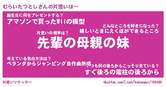 | 意味不明あだ名 | 『ペロリンむらいたつとし』 |