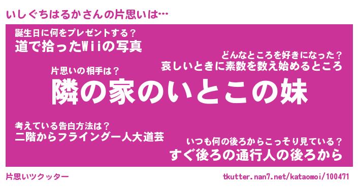 | 胡散臭い通販商品みたいなあだ名 | 『必ず成功する水晶球…その名も「いしぐちはるか」』 |