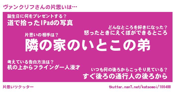 | 胡散臭い通販商品みたいなあだ名 | 『モテモテ間違いなし水晶球…その名も「ヴァンクリフ」』 |