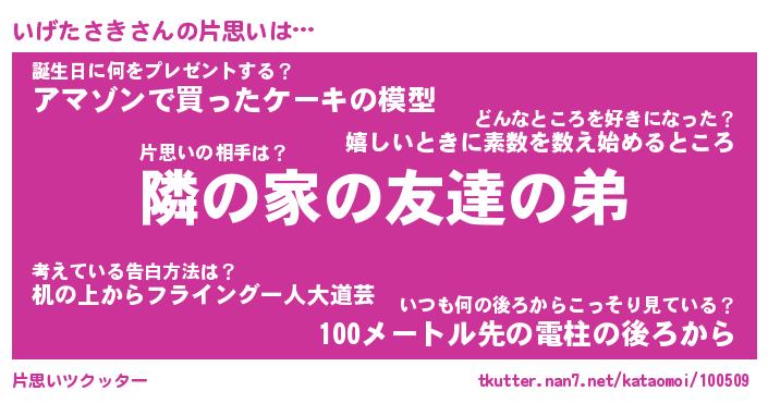 | 男性向けラノベタイトル風あだ名 | 『いげたさきの憂鬱』 |