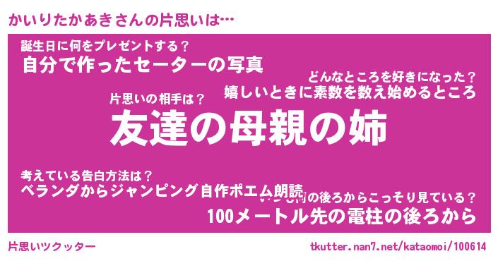 | 胡散臭い通販商品みたいなあだ名 | 『億万長者になれるブレスレット…その名も「かいりたかあき」』 |