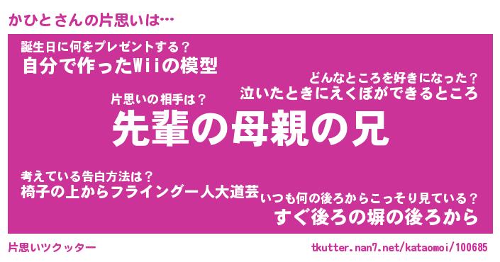 | ヘコむあだ名 | 『かひにー』『なまこ酢』『かひを』 |