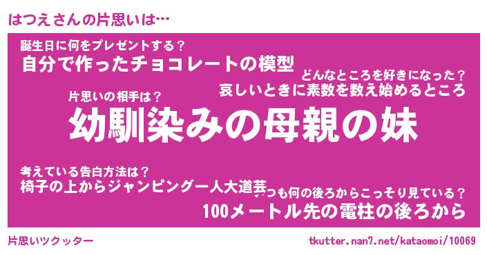 | 男性向けラノベタイトル風あだ名 | 『はつえの憂鬱』 |