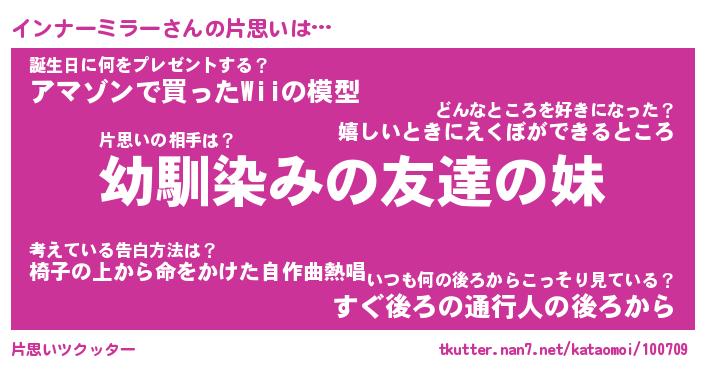 | 男性向けラノベタイトル風あだ名 | 『インナーミラーの憂鬱』 |
