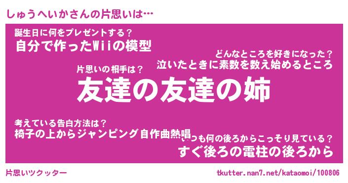 | ヘコむあだ名 | 『しゅっふぃ~』『牛乳』『しゅお』 |