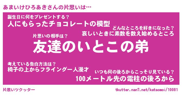| 伝説のあだ名 | 『封印されしスナイパーあまいけひろあき』 |