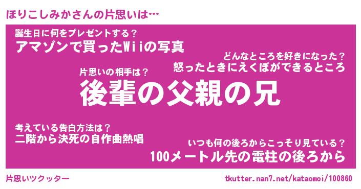 | ヘコむあだ名 | 『ほりふぇ~』『つくし』『ほり太郎』 |