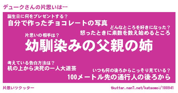 | 男性向けラノベタイトル風あだ名 | 『デュークの憂鬱』 |